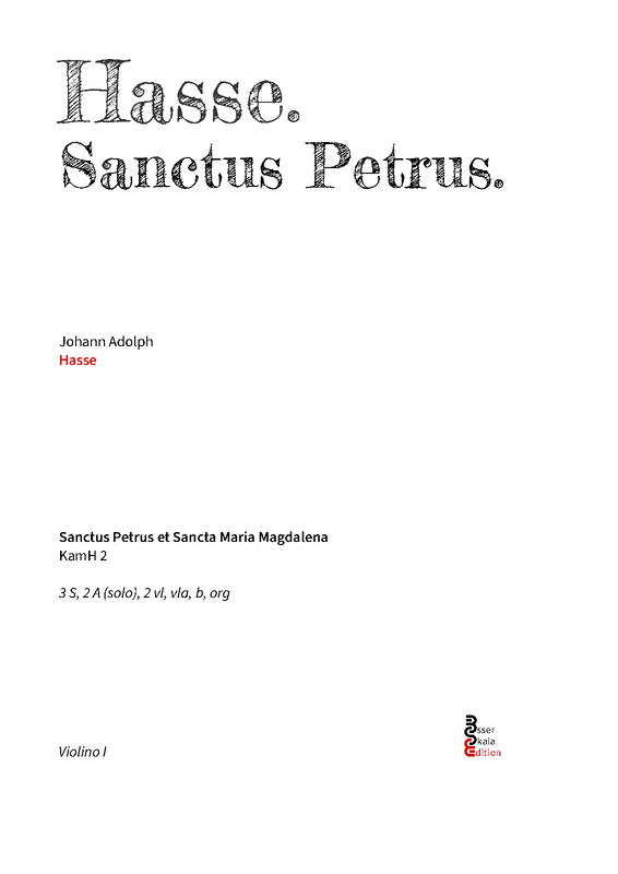 | Alternative. Title | S. PETRUS ET S. MARIA MAGDALENA Oratorio latino composto dal Sigre Giov. Adolfo Hasse. detto il Sassone |