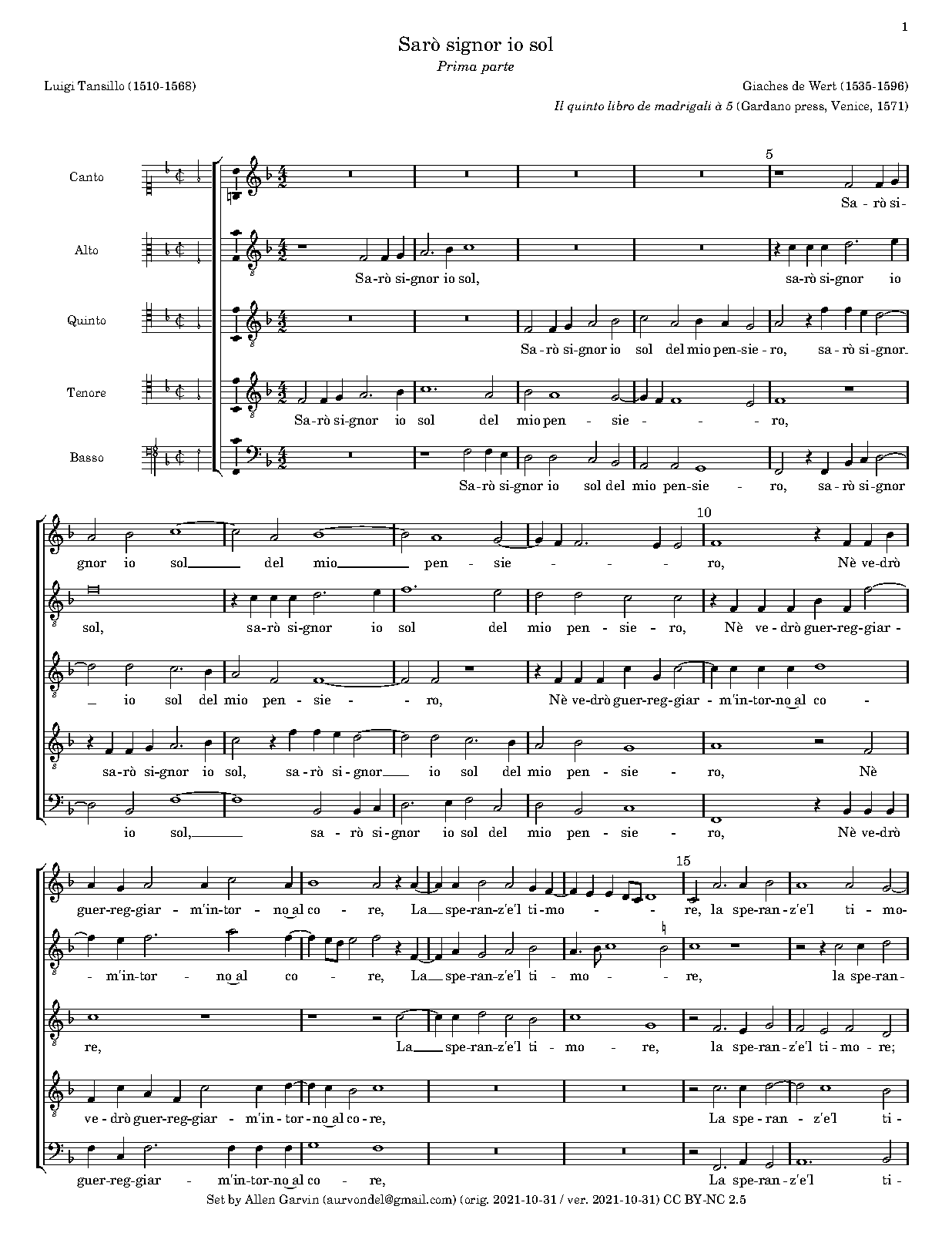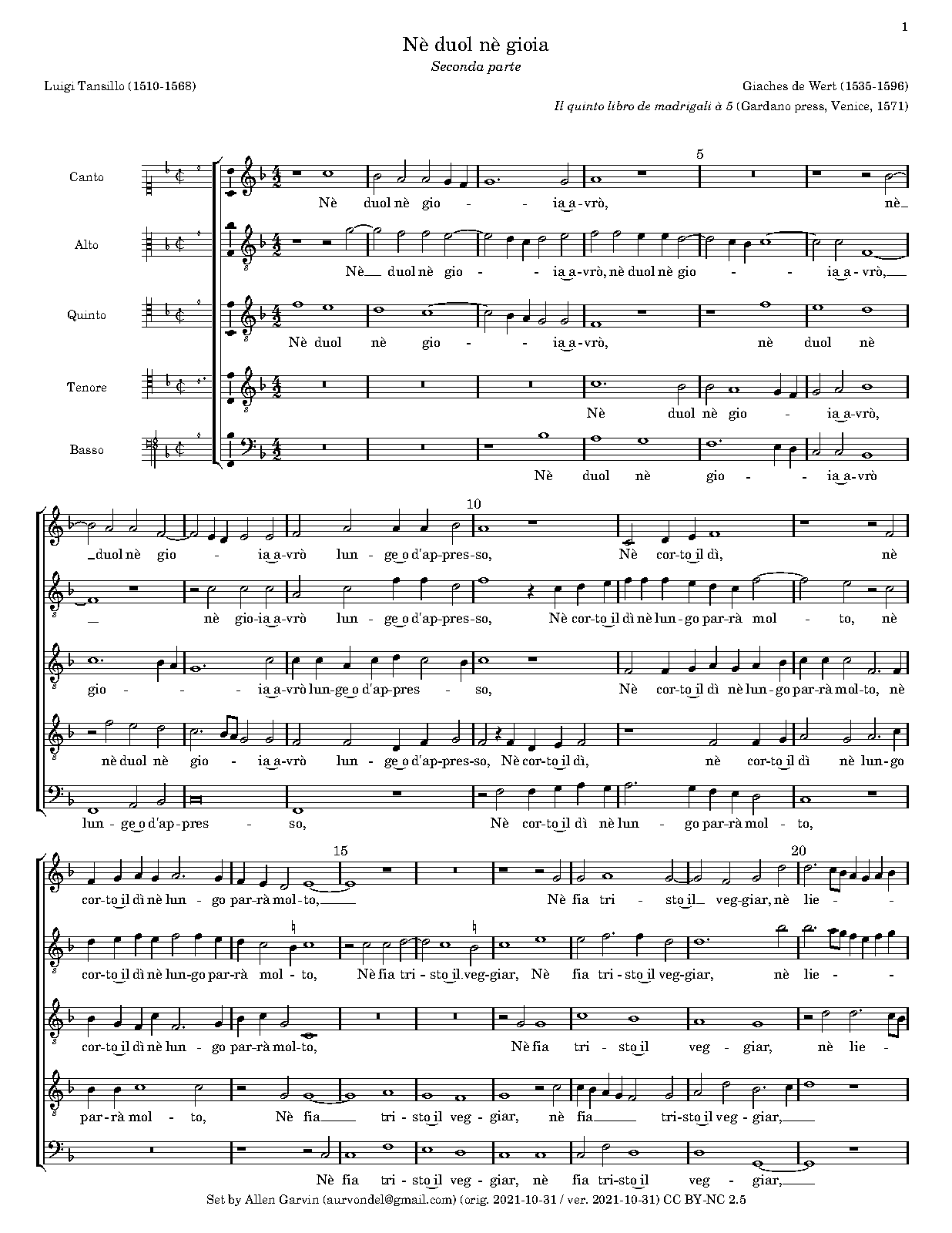 | First Publication | 1571 in Il quinto libro de madrigali à 5 (Venice: Gardano press) |
