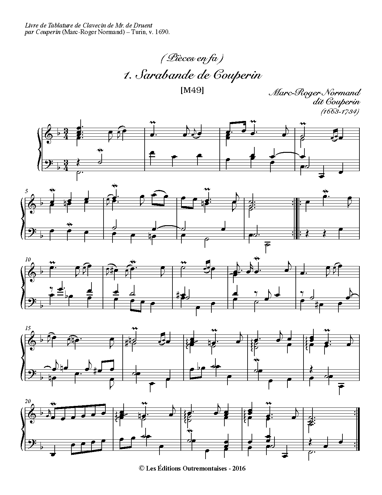 From Livre de Tablature de Clavescin de Mr. de Druent par Couperin (Marc-Roger Normand) – Turin, ca. 1695.