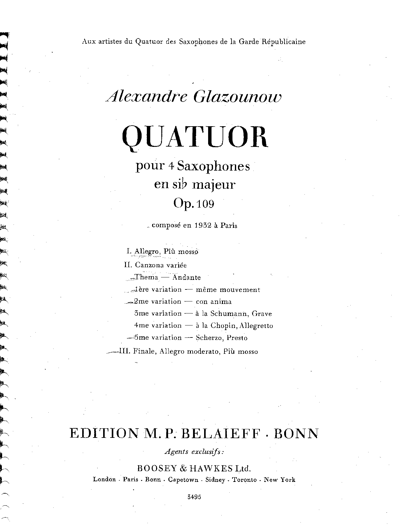 Le quatuor de saxophones d'Alexandre Glazounov opus 109; Le quatuor de saxophones d'Alexandre Glazounov; Quatuor de saxophones (Glazounov)