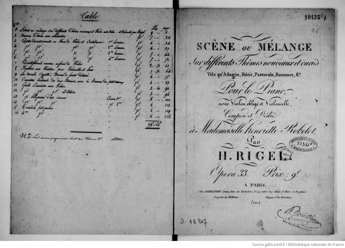 | Alternative. Title | Scène ou Mélange sur differents thèmes nouveaux et variés Tels qu'Adagio, Récit, Pastorale, Romance, &a. Pour le Piano, avec Violon obligé et Violoncelle |
