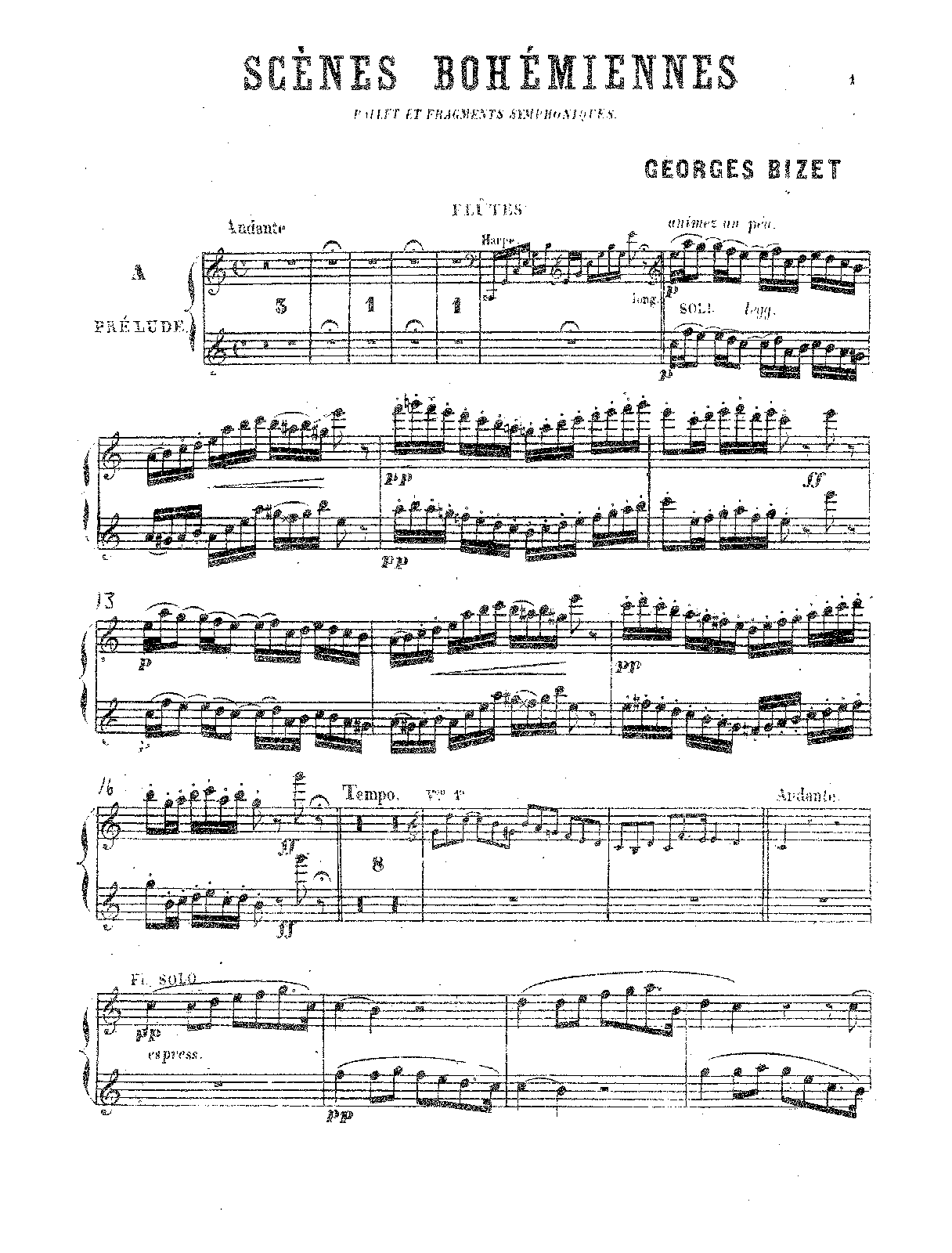 | Extra Information | Nos.1 and 4 correspond to the Prélude and No.11 from the opera. Nos.2 and 3 are taken from Nos.13 and 17 with alterations. Because the Menuet was used as the 3rd movement of the posthumous L'Arlésienne Suite No.2, the Marche (No.8 of the opera) was substituted for the full score and parts. |