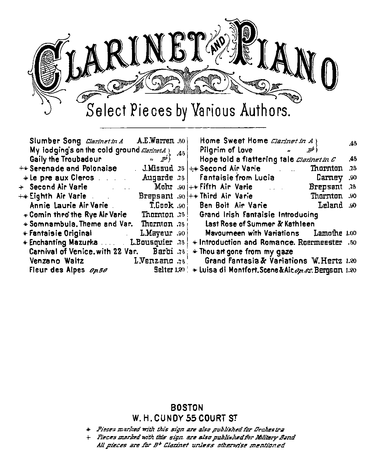 Solo: clarinet (B♭) Orchestra: flute, oboe, clarinet, cornets, horns, trombone, timpani, triangle, strings
