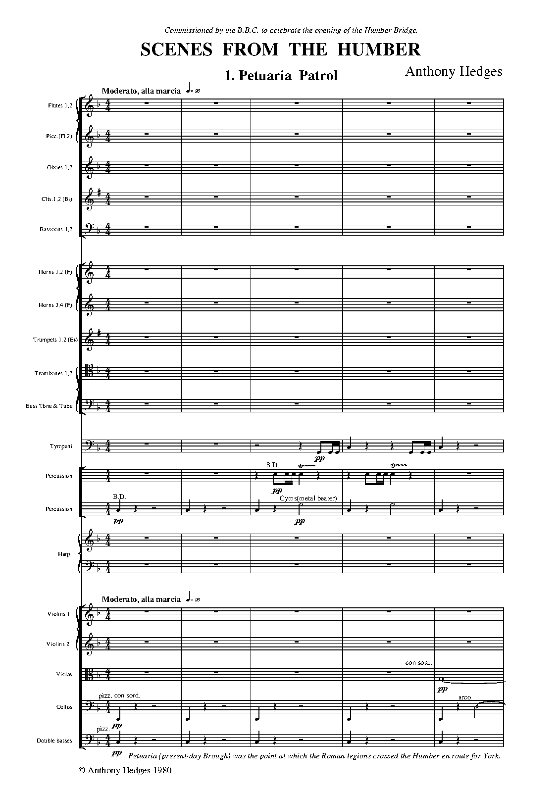 This was a BBC commission for the official opening of the Humber Bridge. The first of many broadcast performances was of the premiere on BBC Radio 3. It was first recorded on LP and subsequently on CD (Marco Polo DDD 8.223886).
