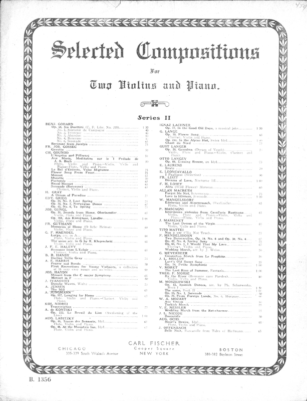 Selected Compositons for Two Violins and Piano, Series II New York: Carl Fischer, 1903. Plate 7578 6 C.