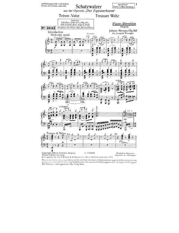 | Alternative. Title | Schatzwalzer, based on themes from the operetta "Der Zigeunerbaron" |