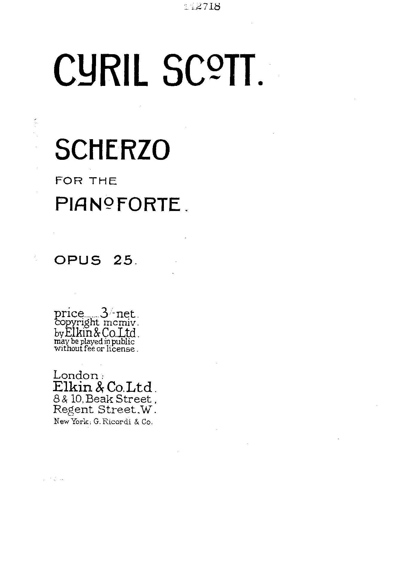 Publisher. Info. London: Elkin & Co., 1904. Plate E. & Co. 222.