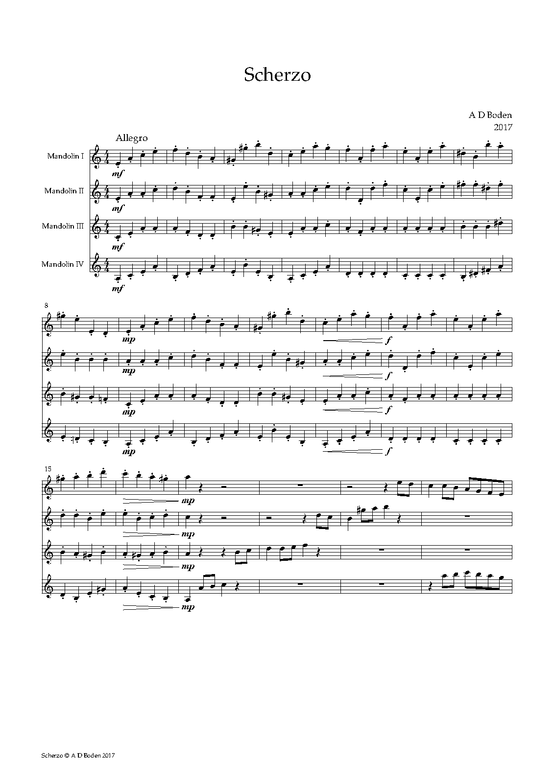 | Genre Categories | Scherzos; For 4 mandolins; Scores featuring the mandolin; For 4 players |