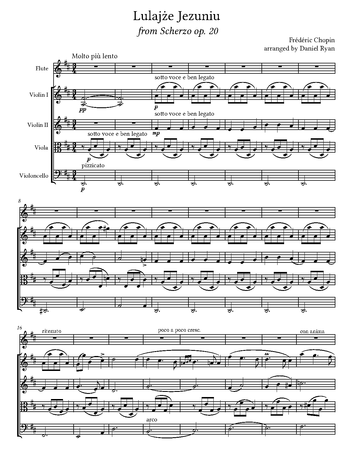 For Flute (ad lib.), 2 Violins, Viola and Cello (Ryan)