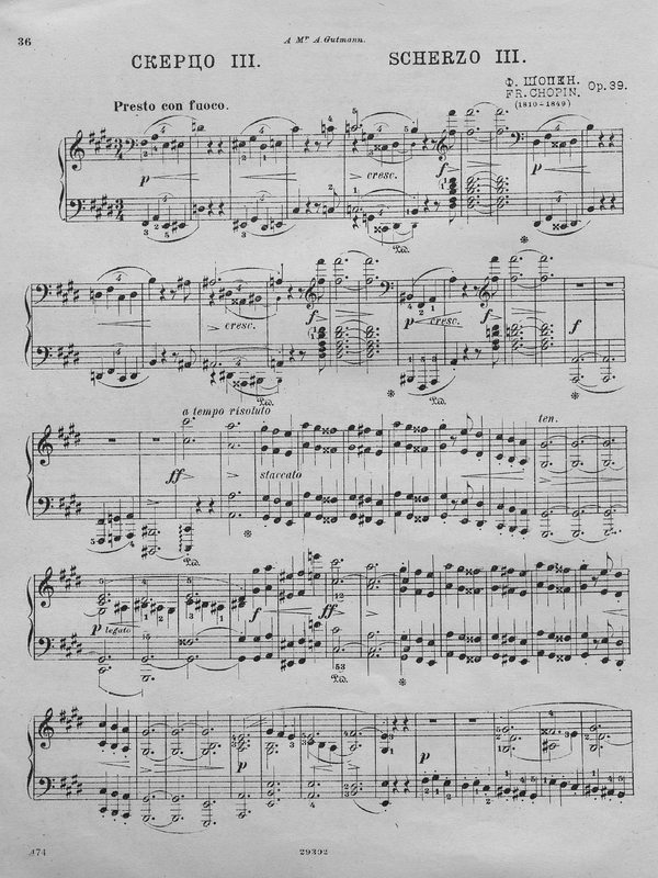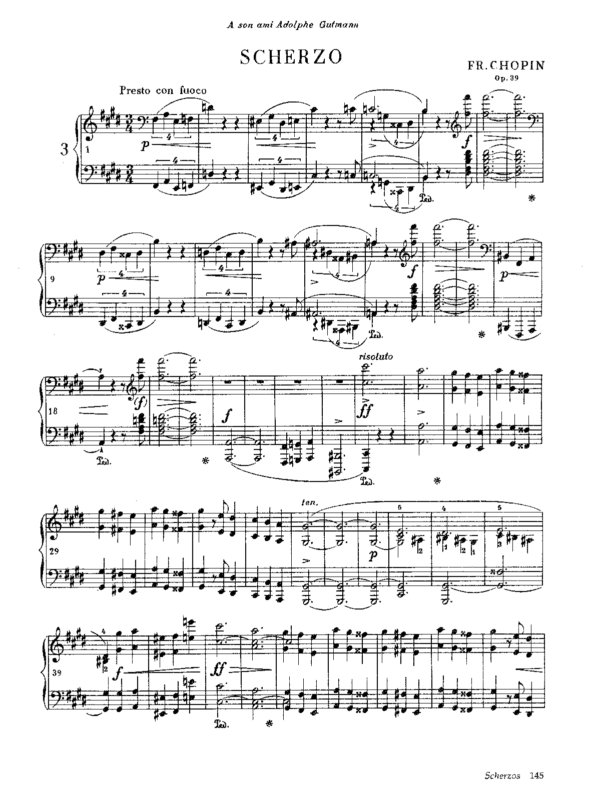 Name Aliases Scherzo for piano No. 3 in C sharp minor, Op. 39, CT. 199; Scherzos, piano, no. 3, op. 39, C♯ minor