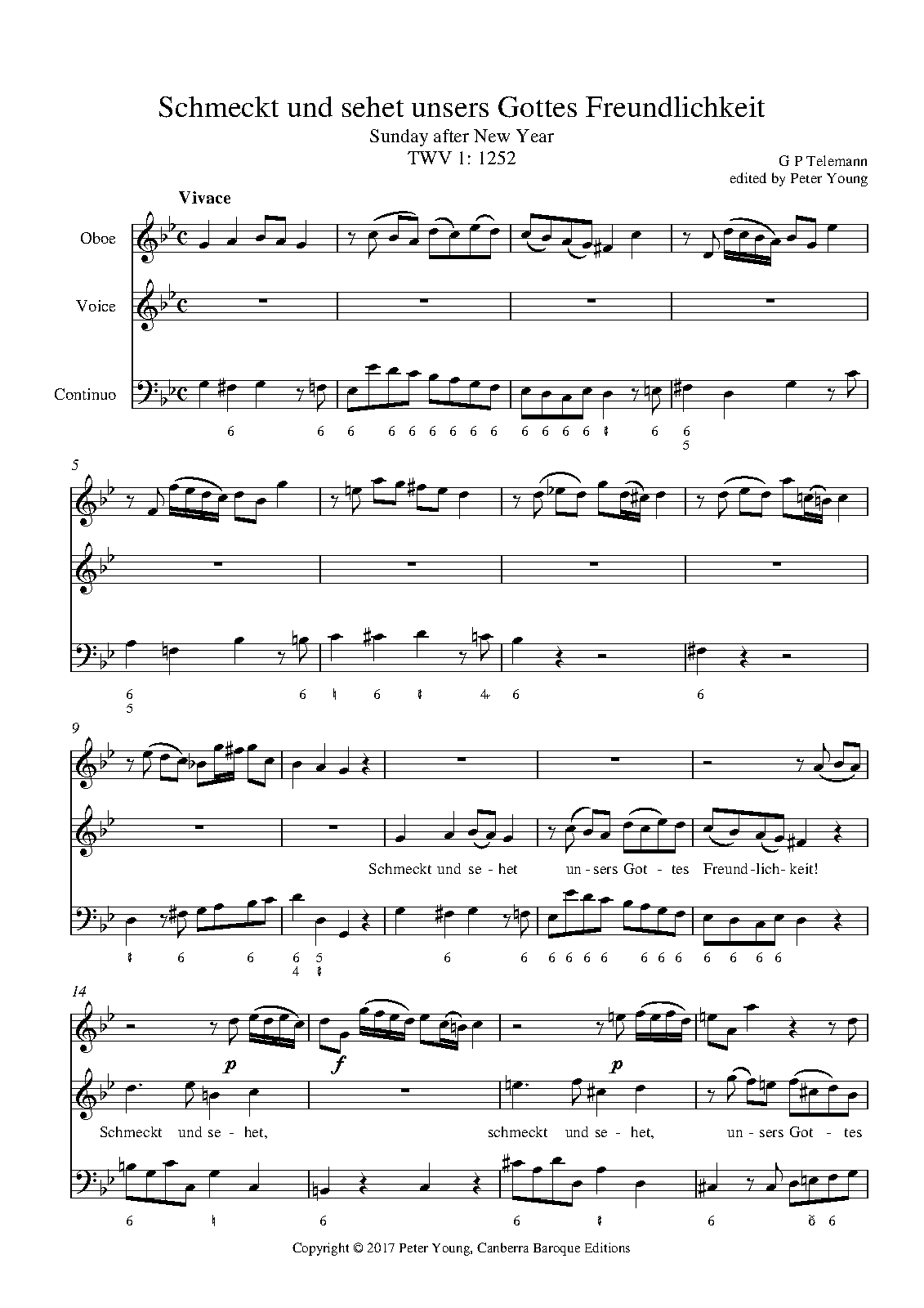 | Work Title | Schmecket und sehet unsres Gottes Freundlichkeit, TWV 1:1252 |