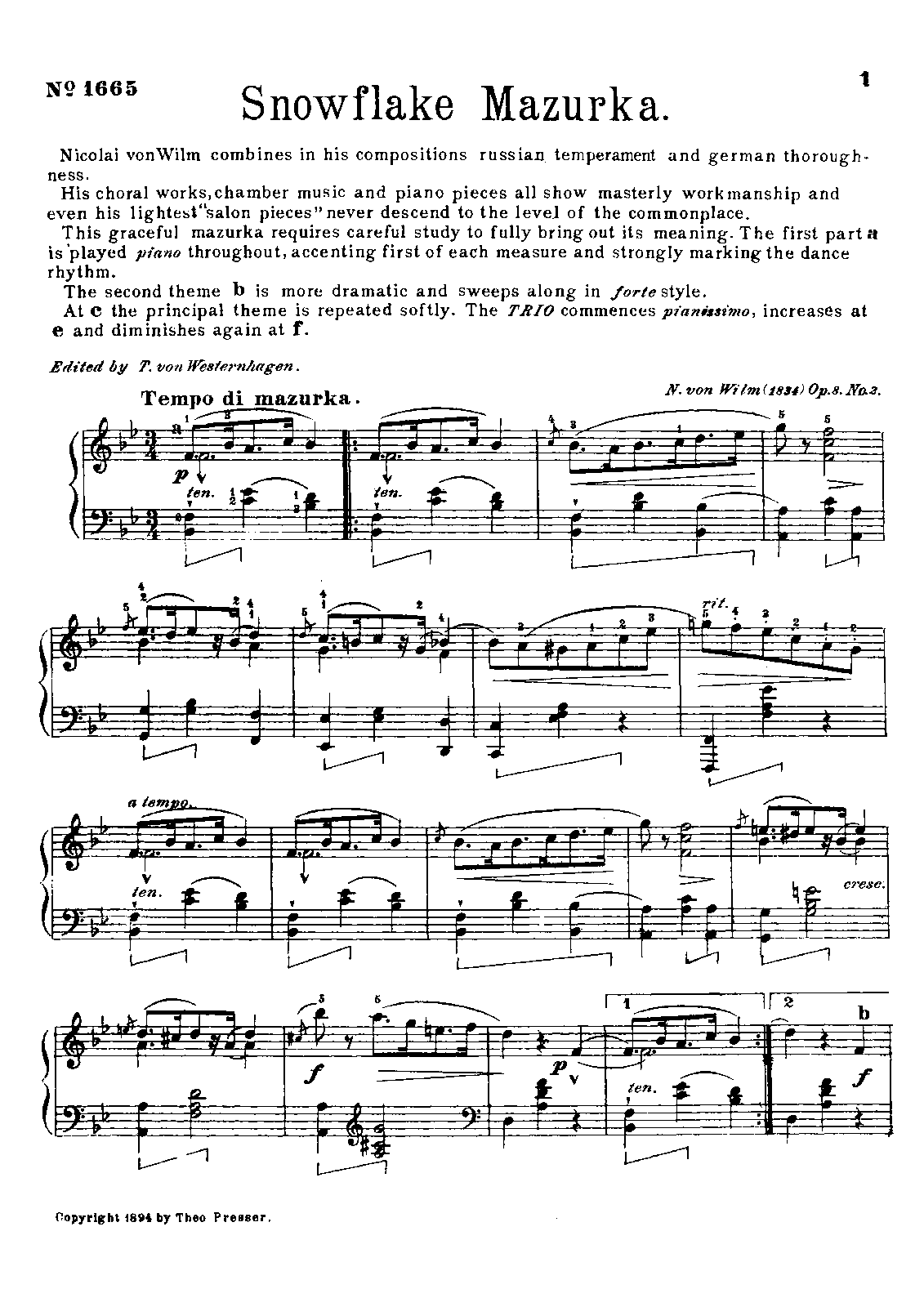 Philadelphia: Theodore Presser, 1894. Plate 1665.
