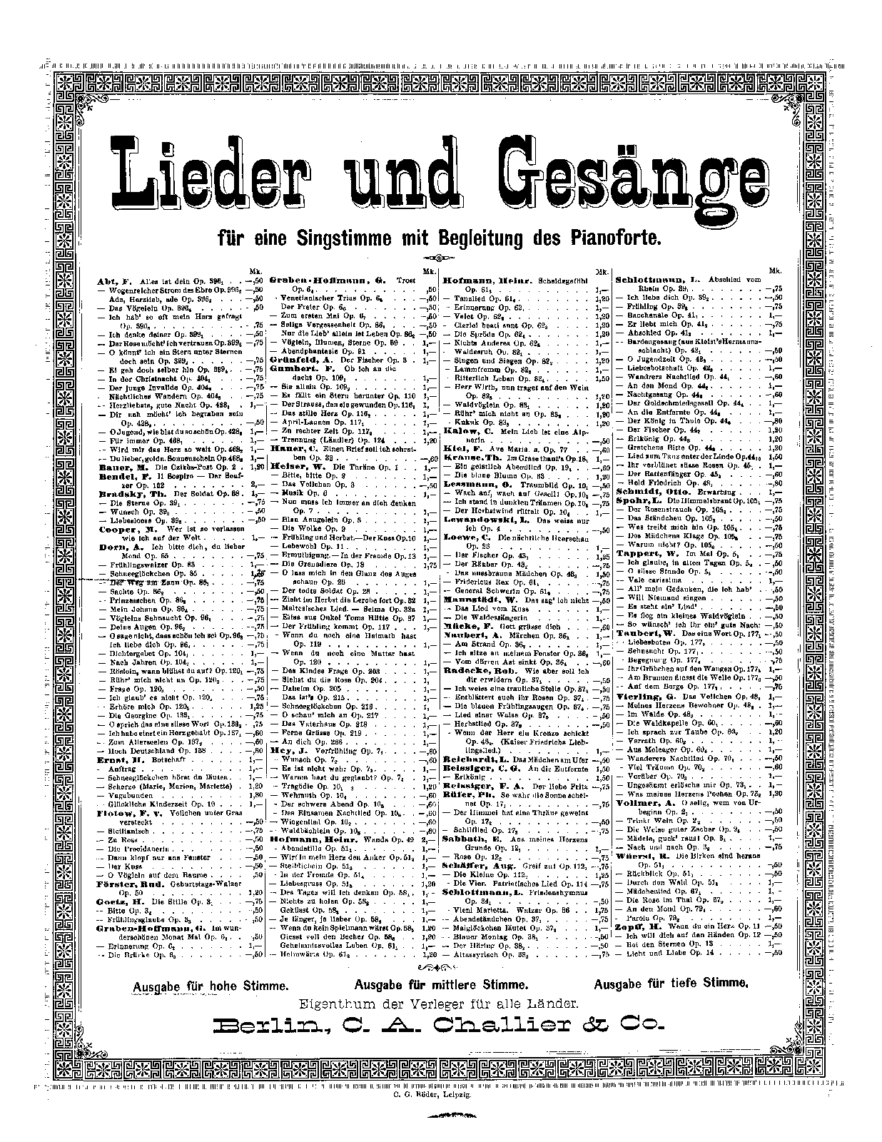 | Genre Categories | Songs; For voice, piano; For voices with keyboard; |