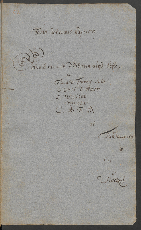 | Instrumentation | Vocal: soprano, tenor, bass, mixed chorus (SATB) Orchestra: flute, 2 oboes d'amore, strings, continuo |