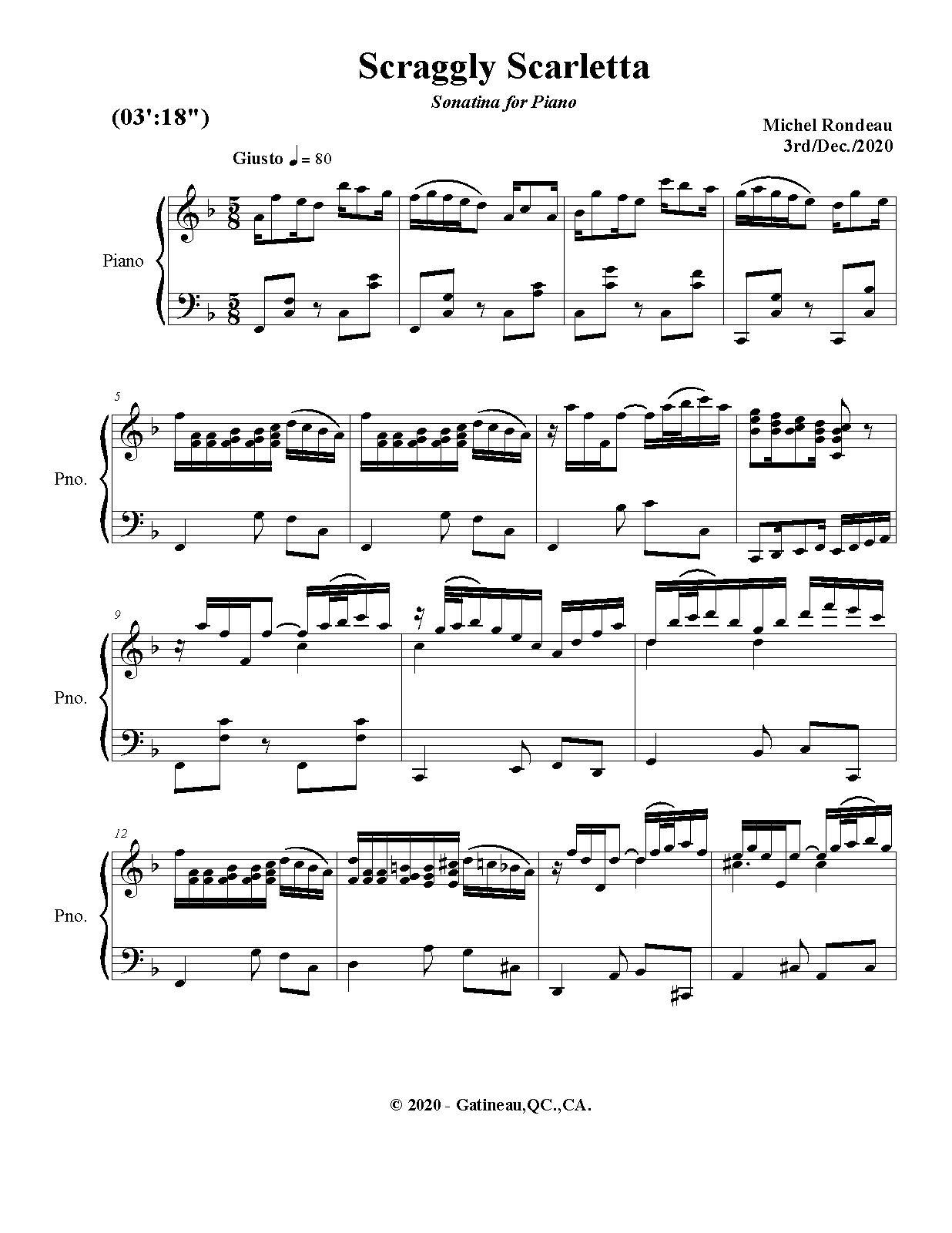 | Movements/SectionsMov'ts/Sec's | 1 sonatina 3 parts |