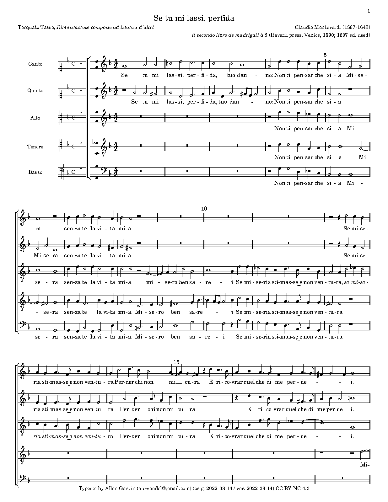 | First Publication | 1590 in Il secondo libro de madrigali à 5 (Venice: Raverii press) |