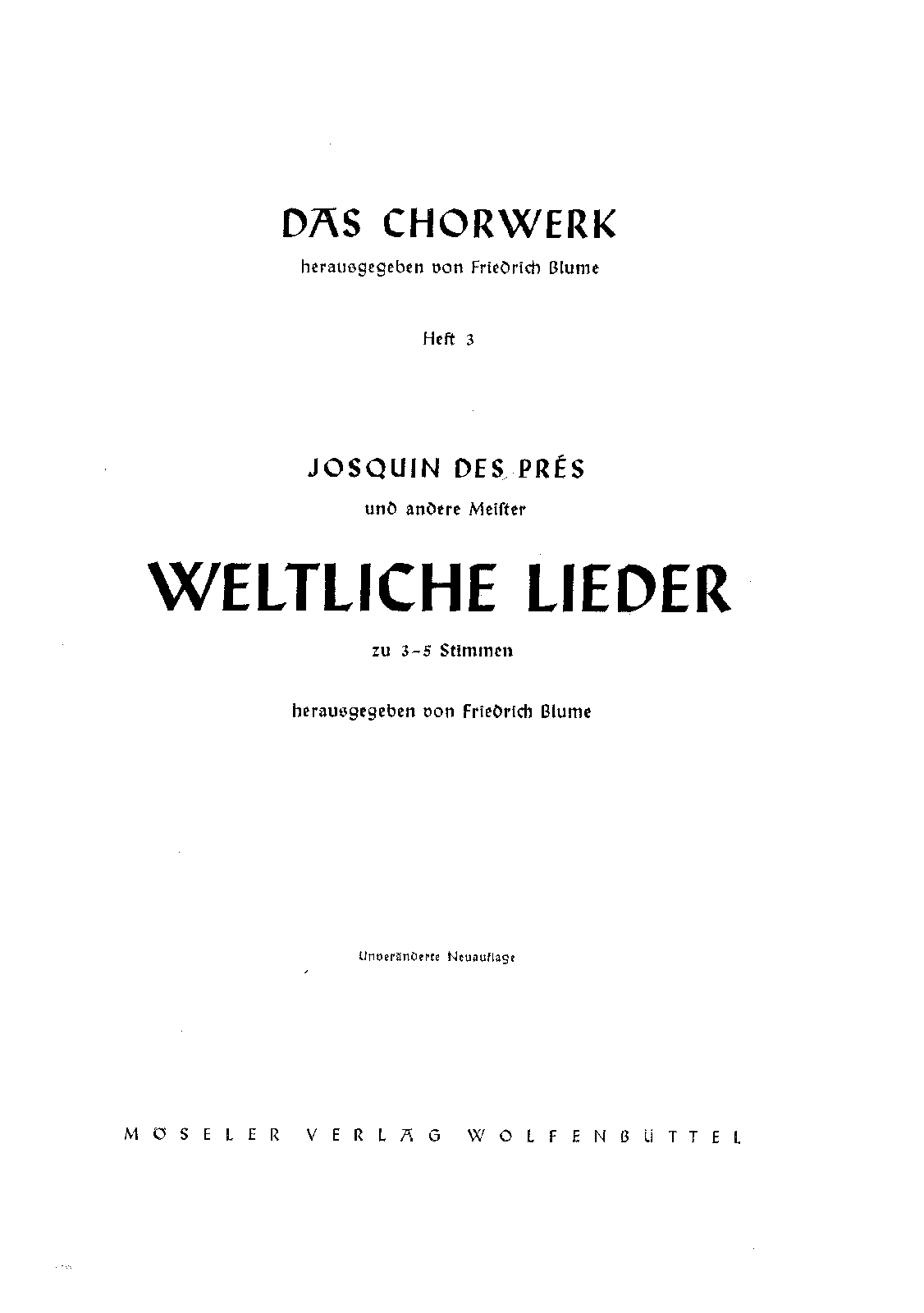 Das Chorwerk, Vol.3 Wolfenbüttel: Möseler, [1929].