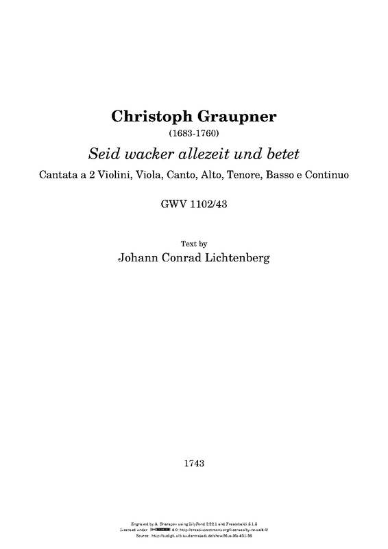 | Opus/Catalogue NumberOp./Cat. No. | GWV 1102/43 |
