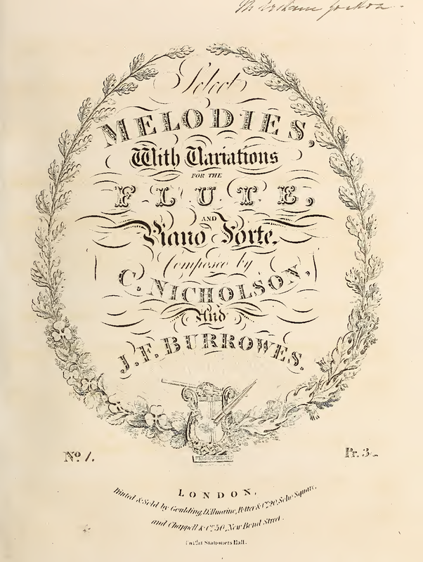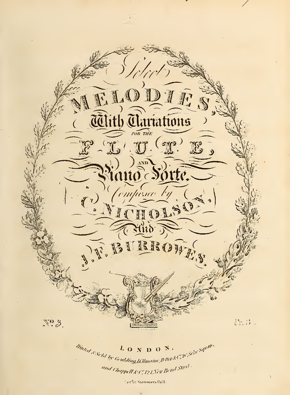 | Alternative. Title | Select Melodies, with Variations for the Flute, and Piano Forte, composed by C. Nicholson, and J.F. Burrowes |