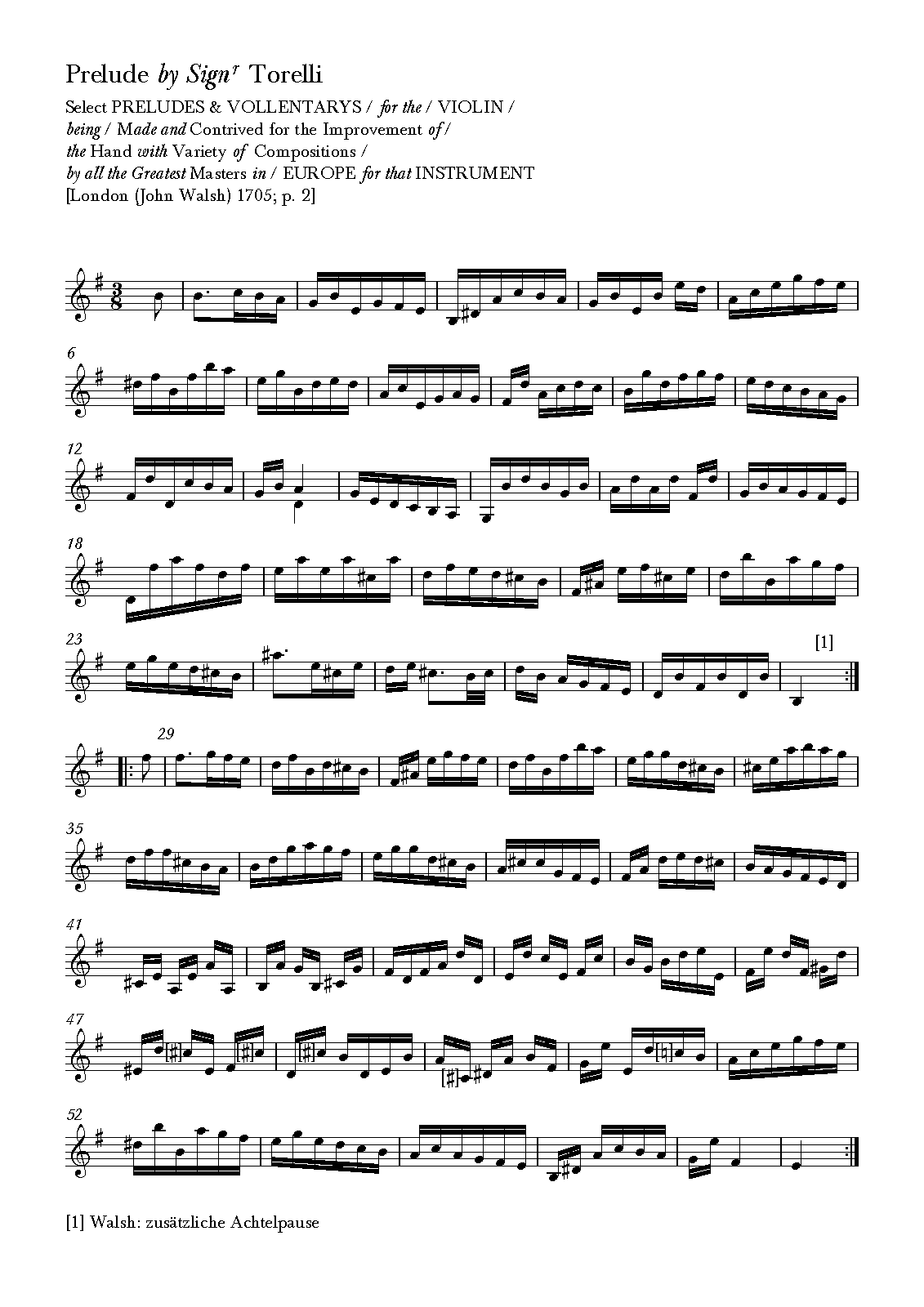 Select Preludes & Vollentarys for the Violin being Made and Contrived for the Improvement of the Hand with Variety of Compositions by all the Greatest Masters in Europe for that Instrument