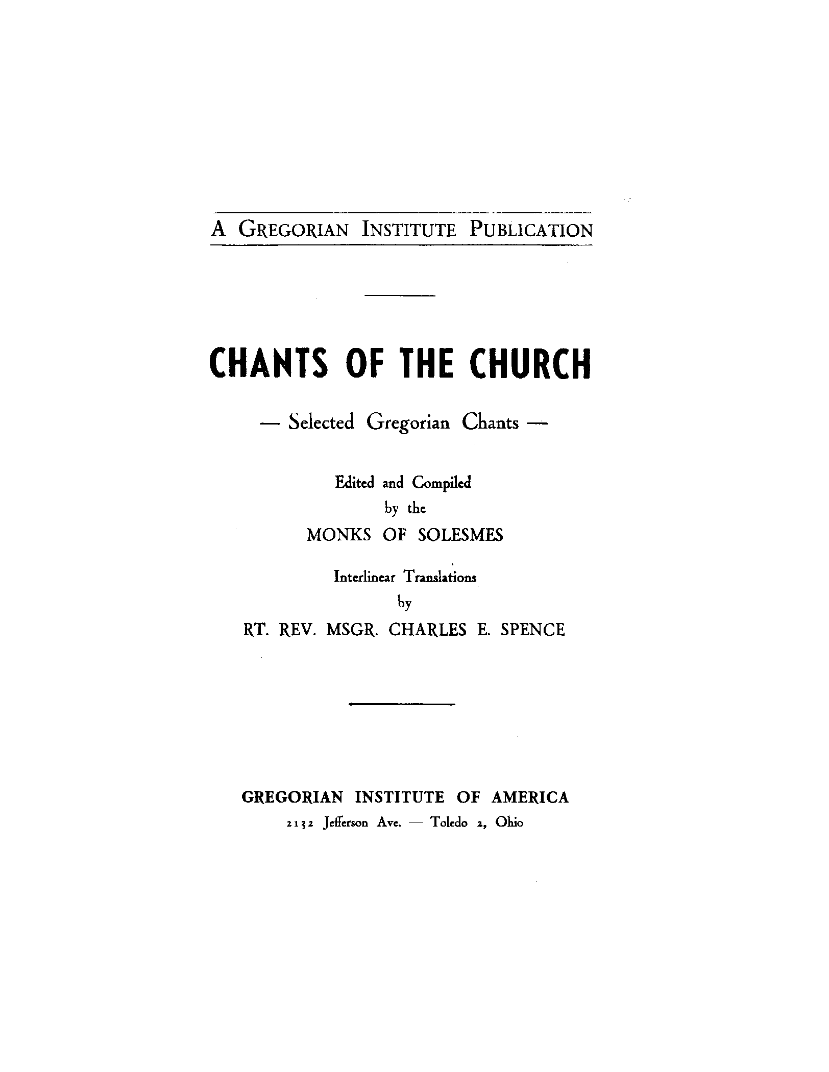 Work Title Chants of the Church: Selected Gregorian Chants