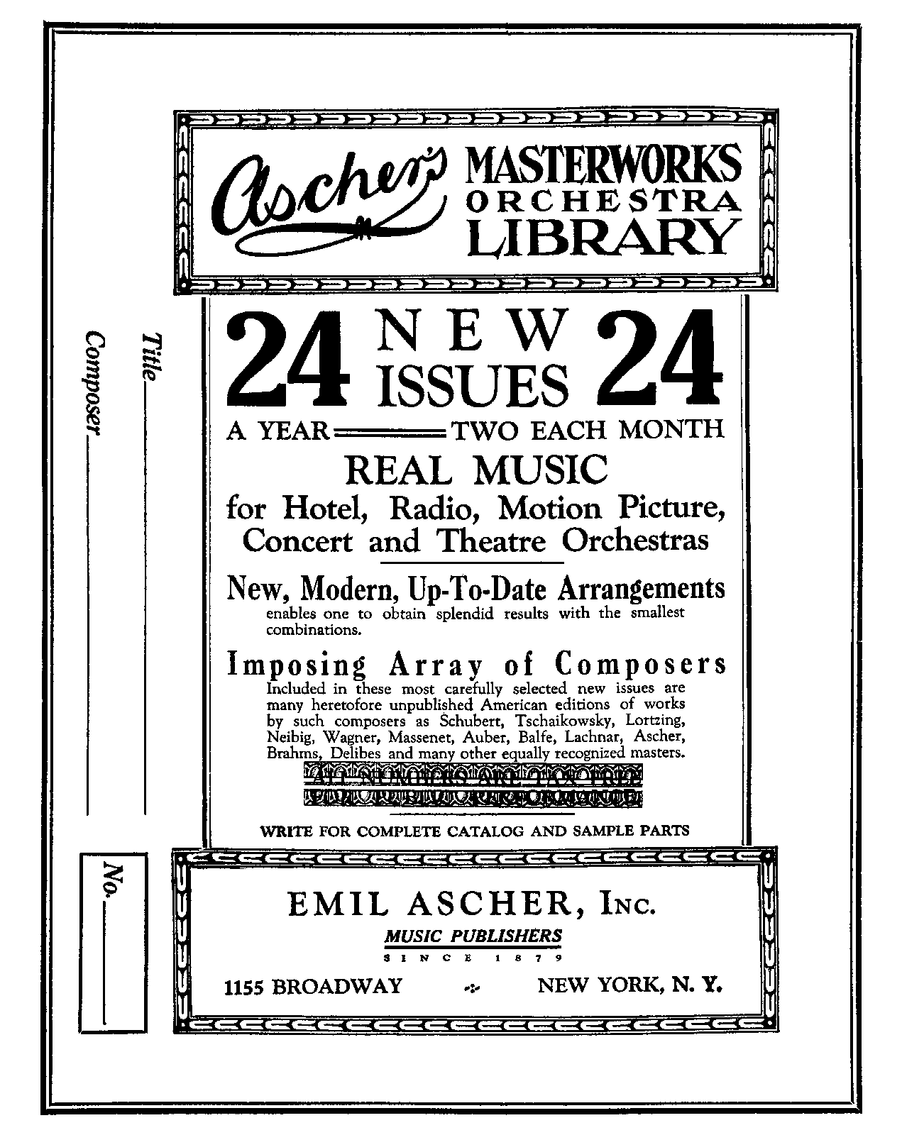 | First Publication | 1910 – New York: Emil Ascher, Inc. |