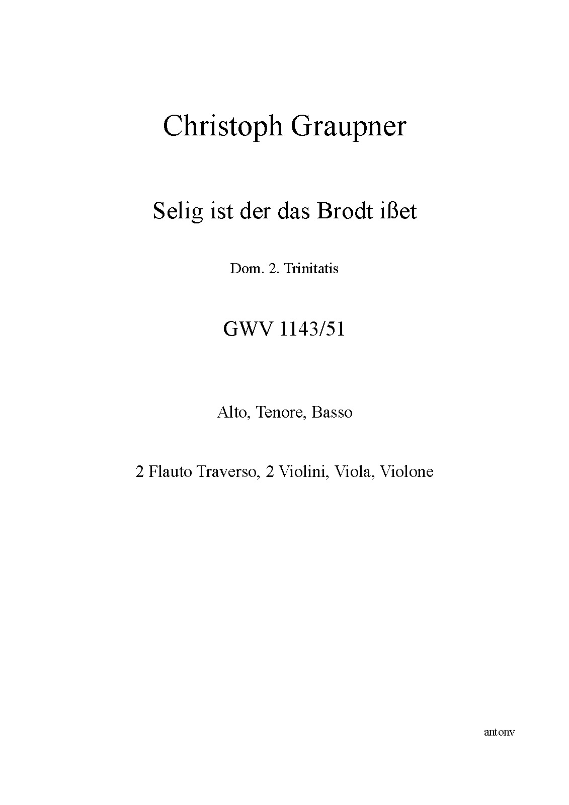 | Opus/Catalogue NumberOp./Cat. No. | GWV 1143/51 |