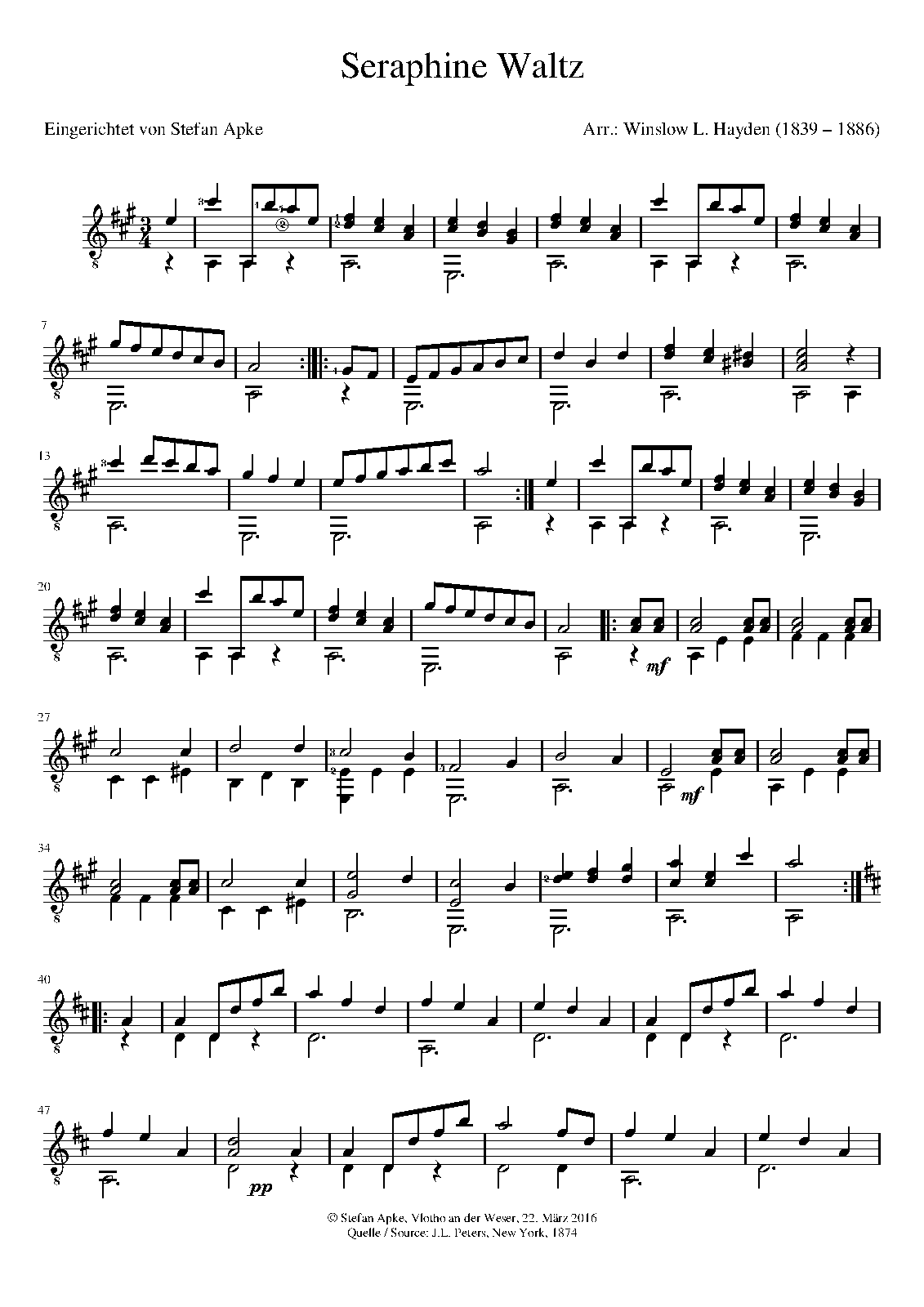 Hayden is the arranger of the guitar version, but the composer is not credited. There are at least two works by this title, one by P.B. Curtiss and one by G.R. Lampard. This page cannot be moved to the correct composer until the melody can be compared to those works (and possibly others) to find the correct composer.