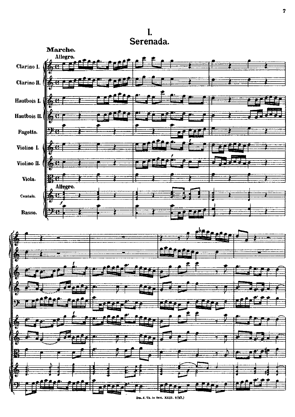 Orchestra: 2 oboes, bassoon, 2 clarinos, harpsichord, strings