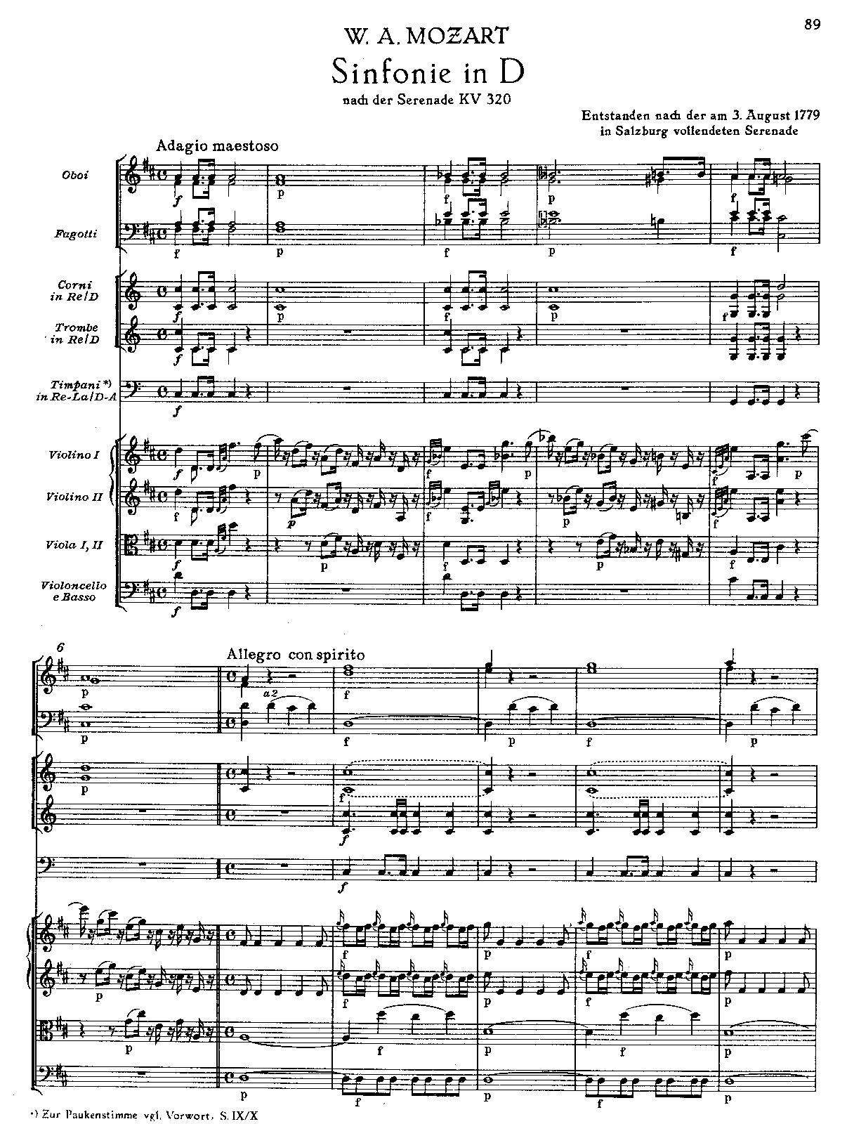 Misc. Notes Movements 1,5 and 7 were borrowed from the Serenade to create this arrangement. Also known as Sinfonie in D nach der Serenade KV 320.