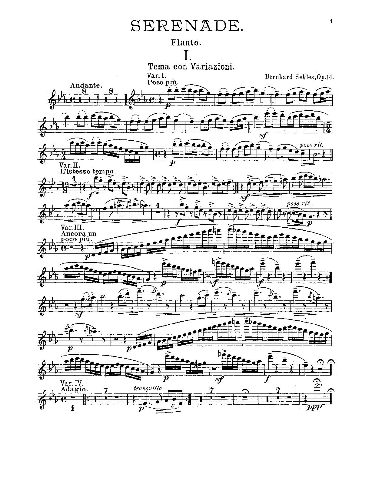 | Genre Categories | Serenades; For flute, oboe, clarinet, bassoon, horn, harp, 2 violins, viola, cello, double bass; Scores featuring the flute; |