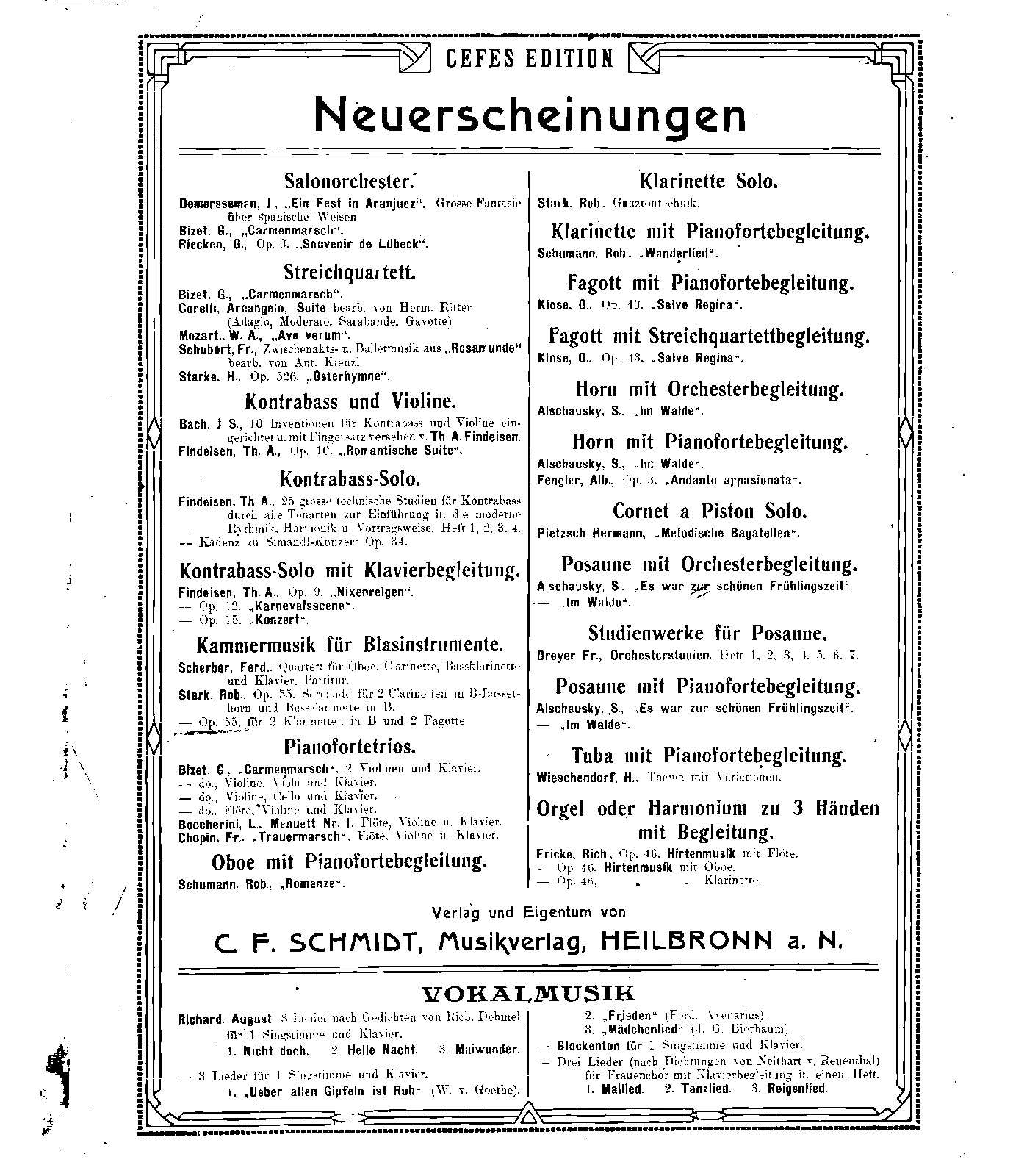 The work was also published in a version for 2 clarinets (B♭), basset horn, and bass clarinet (B♭). Stark's Op.50 had been published in 1895.