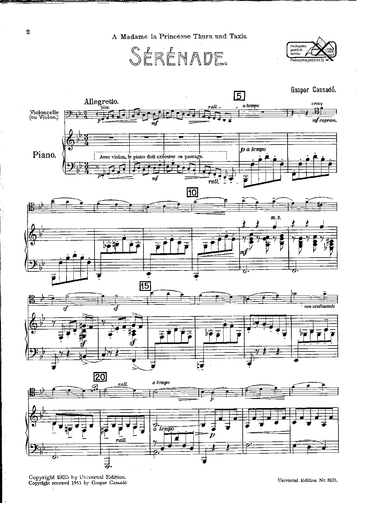 | Genre Categories | Serenades; For cello, piano; Scores featuring the cello; |