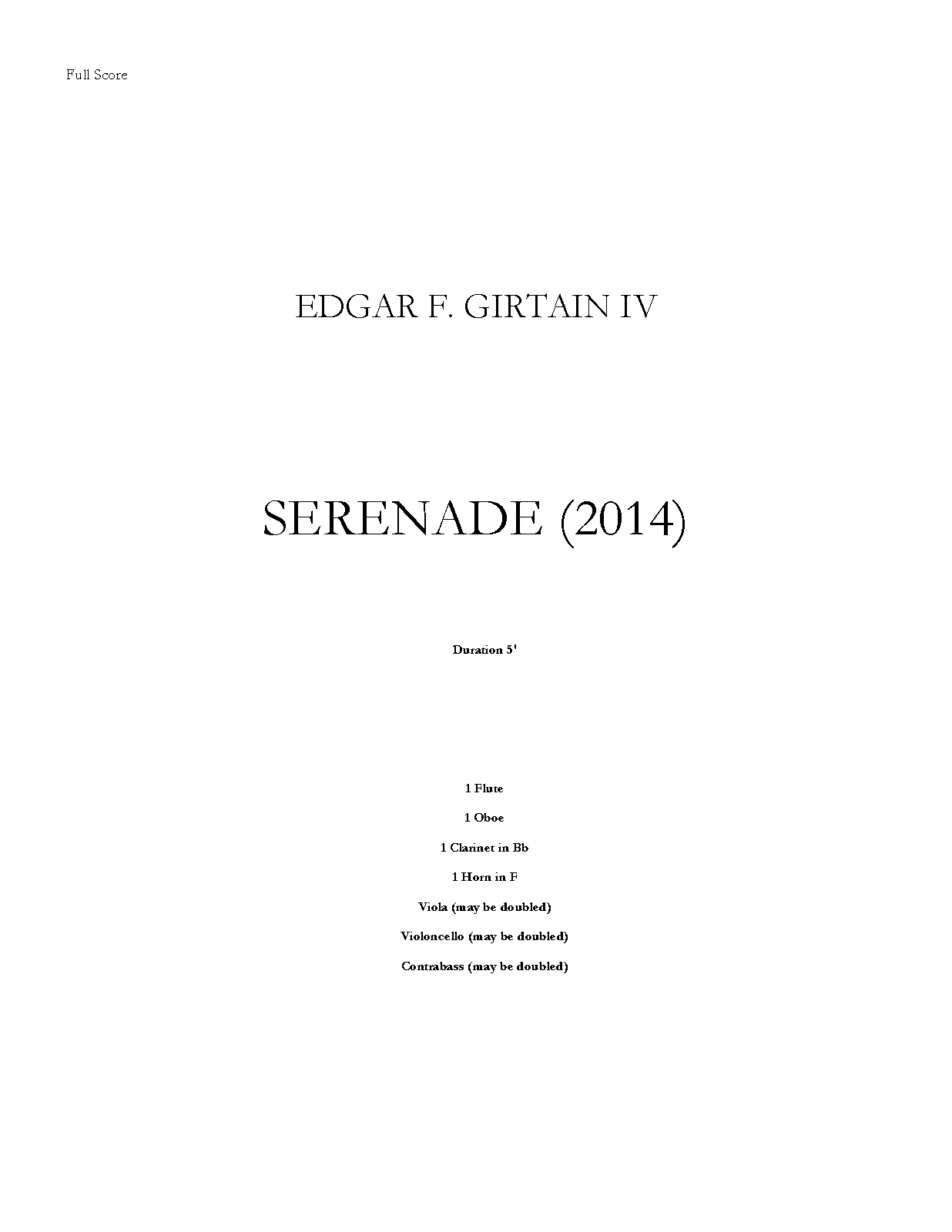 | Genre Categories | Serenades; For flute, oboe, clarinet, horn, viola, cello, double bass; Scores featuring the flute; |