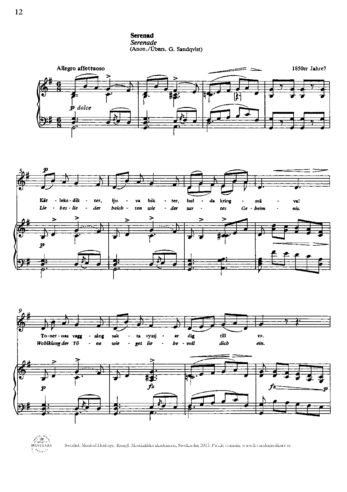 | Genre Categories | Serenades; For voice, piano; For voices with keyboard; |