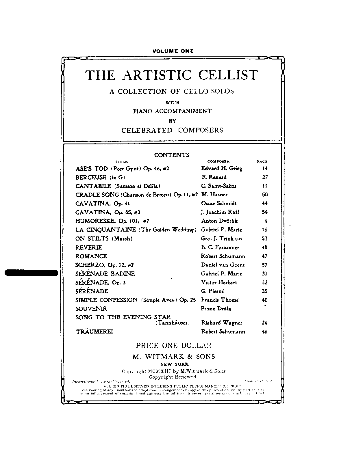| Genre Categories | Pieces; For cello, piano; Scores featuring the cello; |