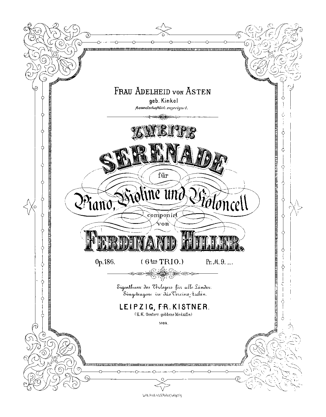 | Genre Categories | Serenades; Trios; For violin, cello, piano; |