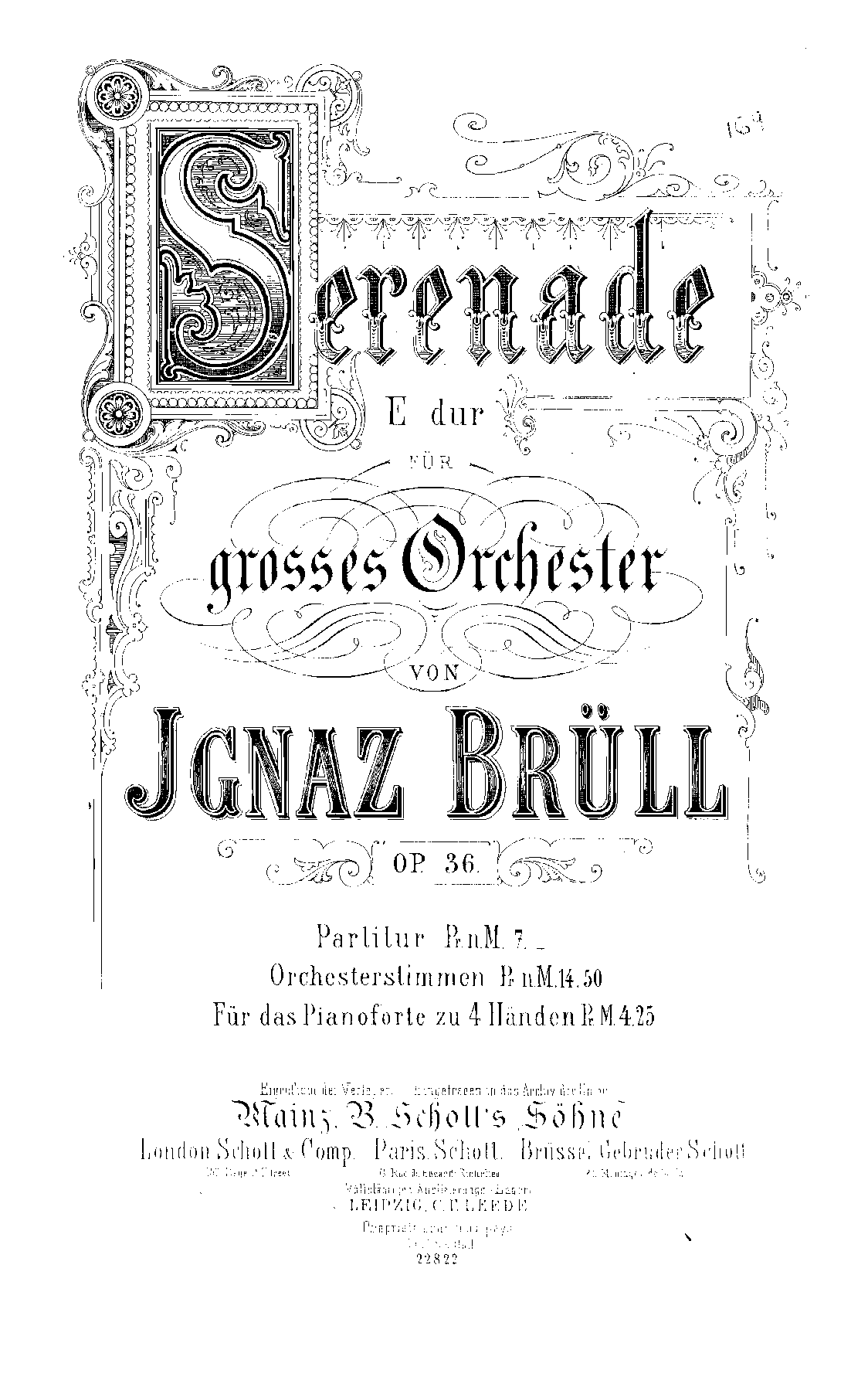 Mainz: B. Schott's Söhne, n.d.(ca.1879?). Plate 22822.