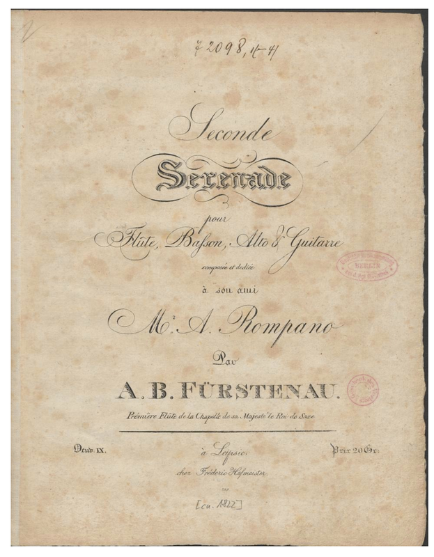 Seconde sérénade pour flûte, basson, alto et guitarre. Oeuv. IX.