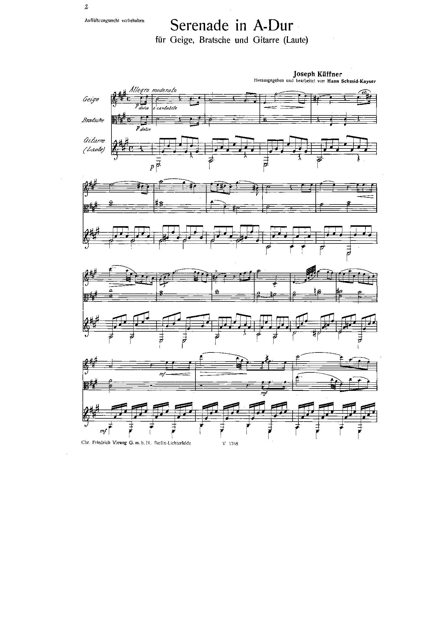 | Genre Categories | Serenades; For guitar, violin, viola; Scores featuring the violin; |