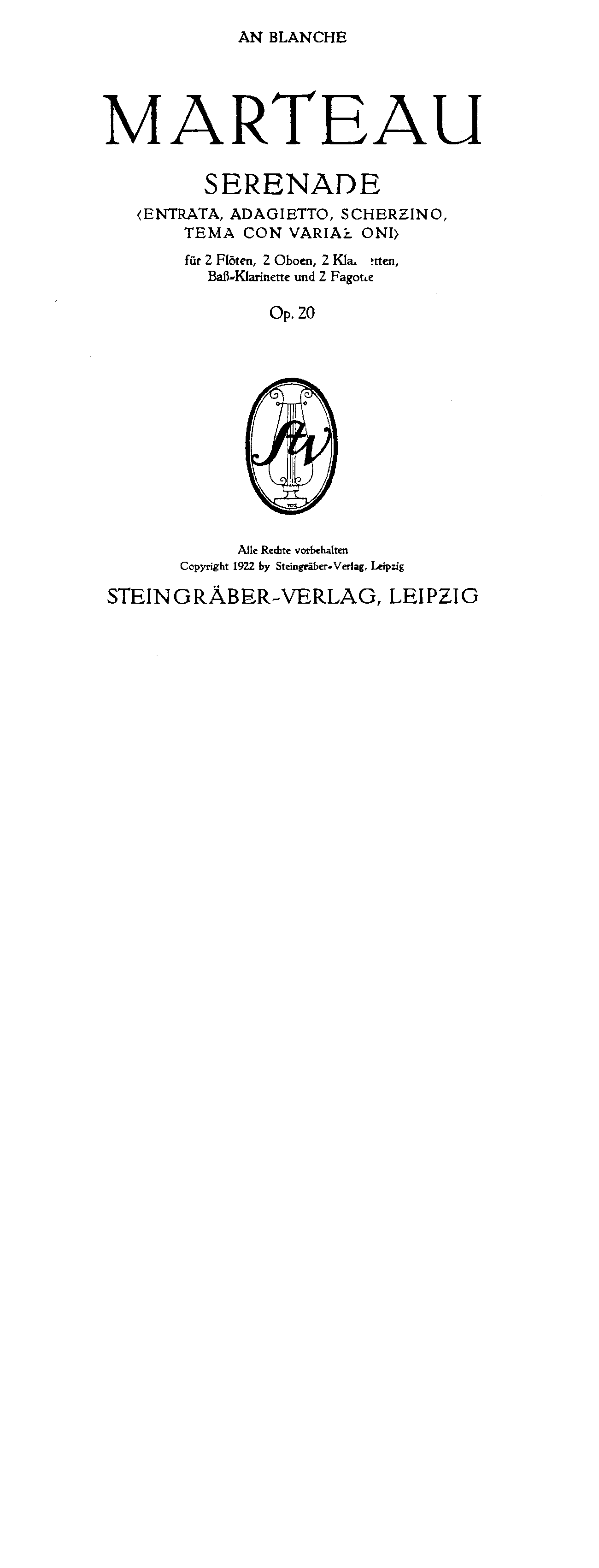 | Dedication | An Blanche (composer's second wife) |