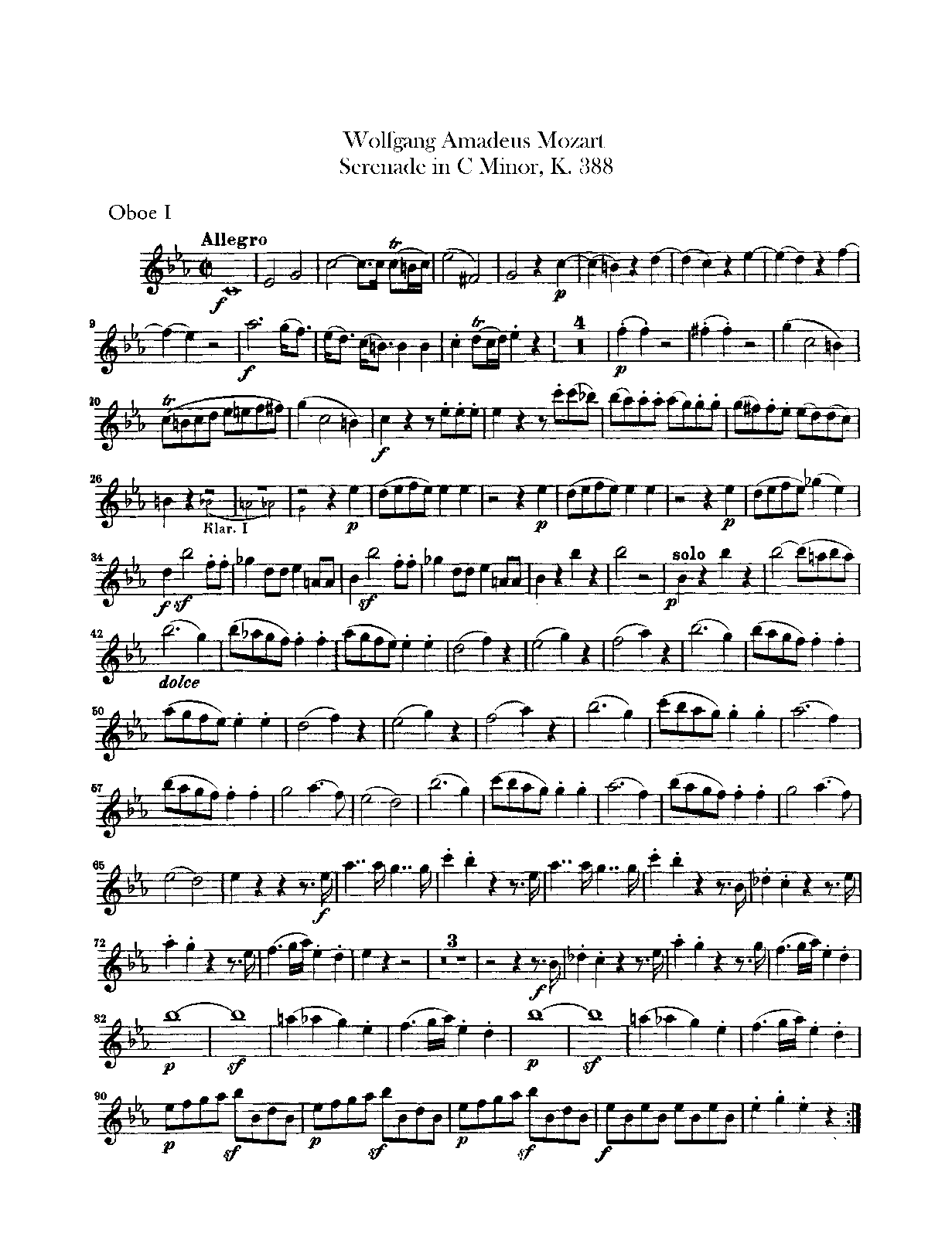 | Name Aliases | Serenade in C Minor, K. 388; Serenade No. 12 for winds in C minor, K. 388/384a |
