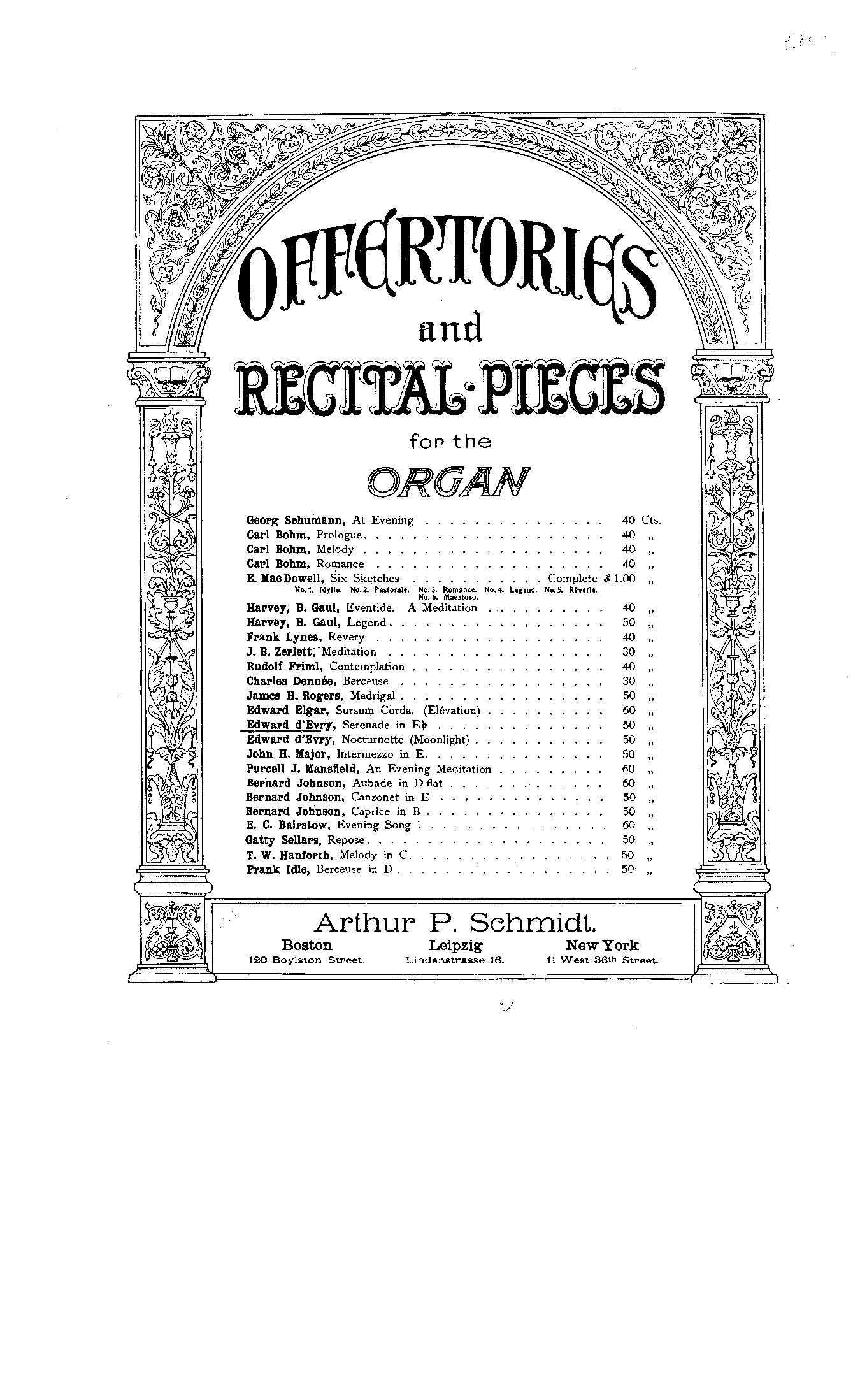 | First Publication | 1910 – Boston: Arthur P. Schmidt |