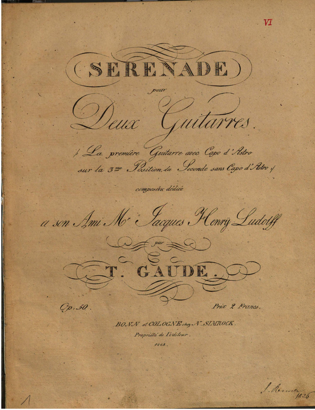 | Alternative. Title | Serenade pour deux Guitarres,la première Guitarre avec capo d'astro sur la 3me position, la seconde sans capo d'astro |