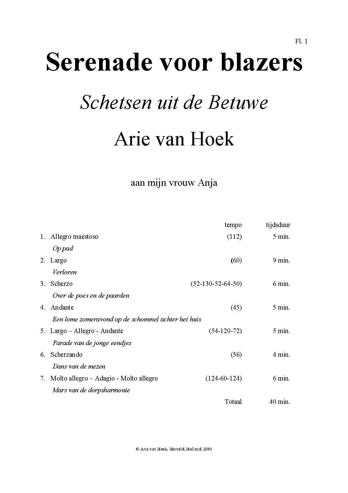 | First Performance. | 11 June 2006, Nijmeegs Blazersensemble, director Paul Vlieks, Hortus Arcadië Nijmegen |