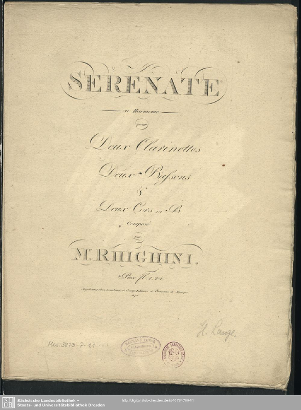| Alternative. Title | Serenate en Harmonie pour Deux Clarinettes, Deux Bassons & Deux Cors |