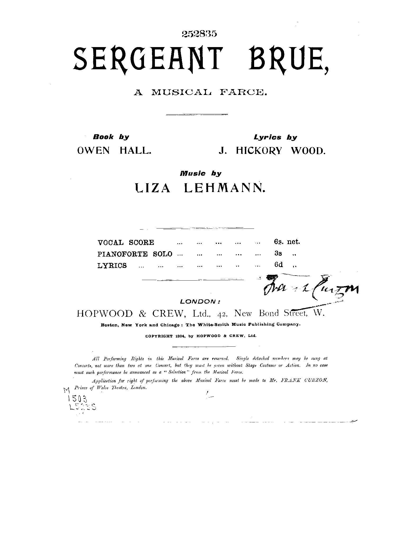 | Alternative. Title | Sergeant Brue, A Musical Farce. |