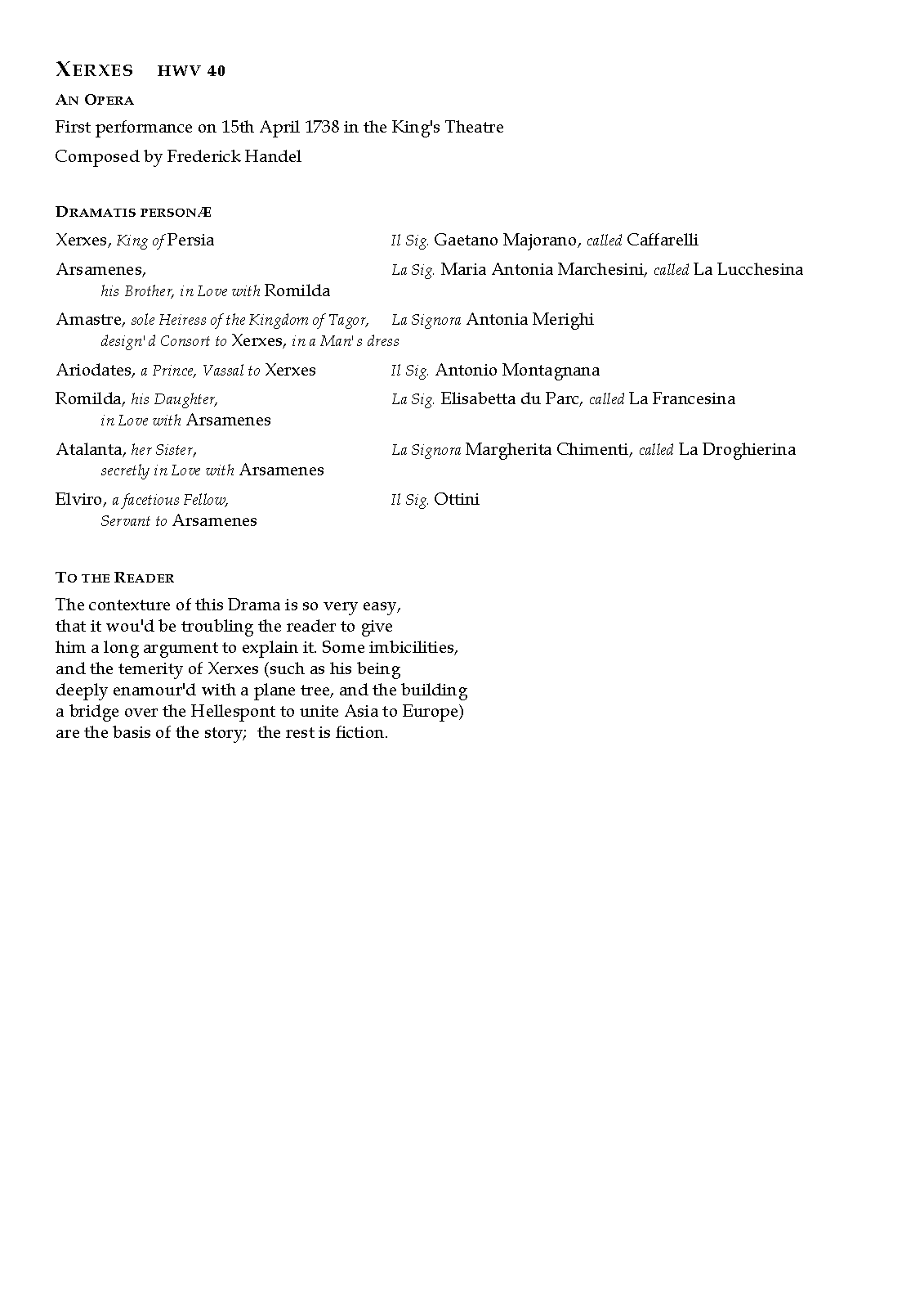 세레세; Handel Opera Xerxes; Xerses; Xerse; Xerxes, HWV 40; Handel's Serse; Handel's Xerxes; Xerxesz