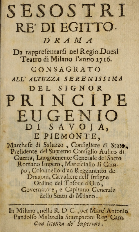 | Alternative. Title | Drama da rappresentarsi nel Regio Ducal Teatro di Milano l'anno 1716. |