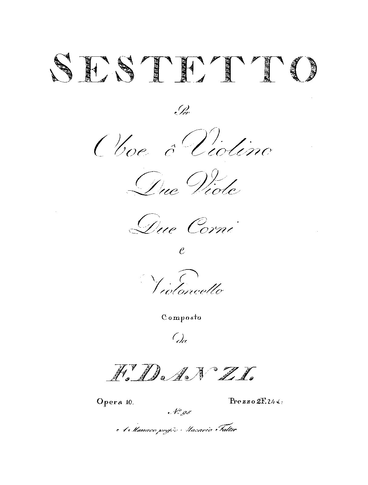 | Genre Categories | Sextets; For 2 clarinets, 2 bassoons, 2 horns; Scores featuring the clarinet; |